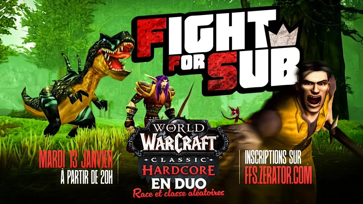 Premier Fight For Sub (FFS) de 2026 ! Cinquante duo de streamers s'affronteront lors d'une compétition sur WoW, organisée et commentée par ZeratoR.