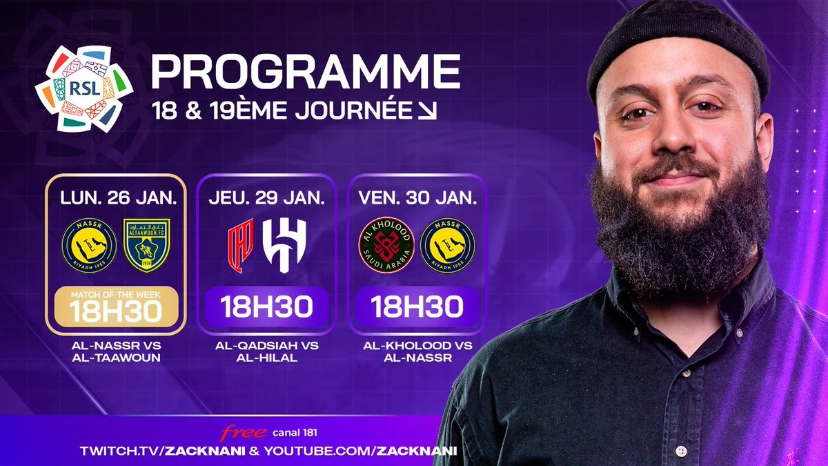 Programme de la RSL (ligue saoudienne) pour les 18ème et 19ème journées. Trois matchs à suivre en direct :
