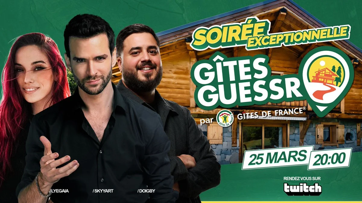 Doigby vous invite à une soirée de jeu GeoGuessr en direct le 25 mars à 20h, en compagnie de Skyyart et LyeGaia. Au programme : une exploration des régions françaises sans bouger du setup. Qui connaît vraiment la géographie de la France ?Dónde ver