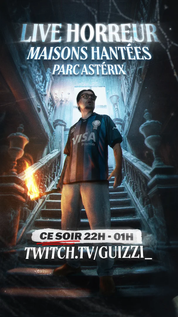 Retrouve Guizzi pour un live horreur IRL dans les maisons hantées du Parc Astérix.