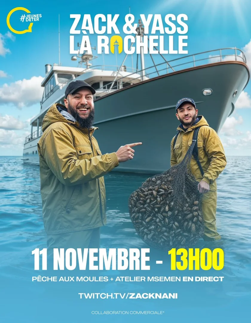 Zack et Yass (@PatrickAdemo) se retrouvent Ă La Rochelle pour un live IRL qui mĂ©lange pĂȘche aux moules et cuisine. Au programme : sortie en mer pour la pĂȘche, puis retour aux fourneaux pour prĂ©parer une recette inĂ©dite de MSEMEN en direct.Where to watch