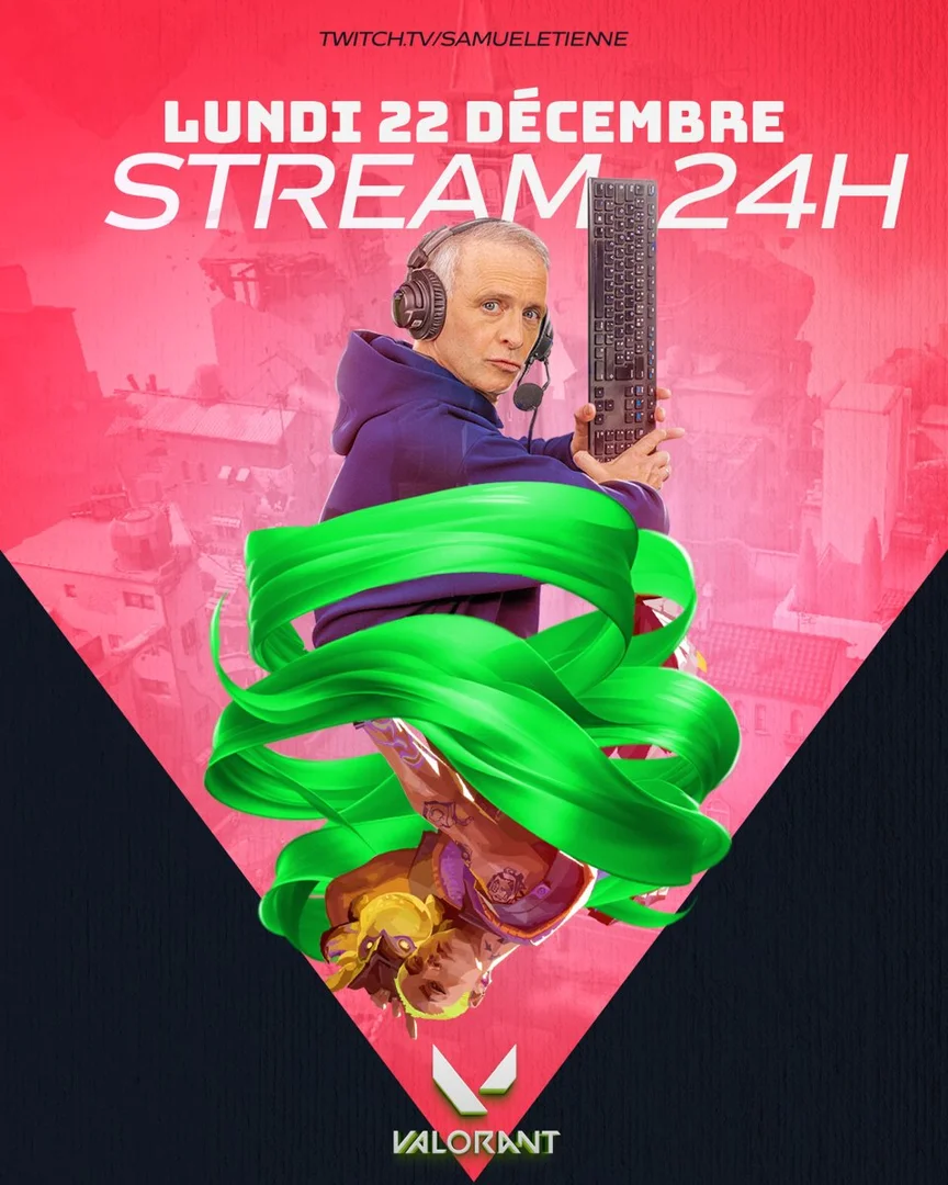 Samuel Etienne célèbre ses 5 ans sur Twitch avec un marathon Valorant de 24 heures non-stop.Where to watch