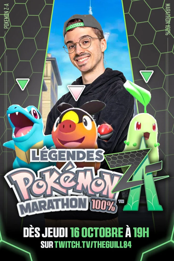 TheGuill84 lance son traditionnel marathon 100% sur le nouveau Pokémon Légendes Z-A ! Comme pour chaque sortie Pokémon, le streamer se lance dans une aventure complète du jeu, découvrant l'univers en même temps que sa communauté.