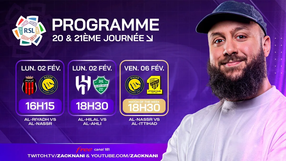 - vendredi 6 février Al-Nassr vs Al-Ittihad en match de la semaine à 18h30. Where to watch