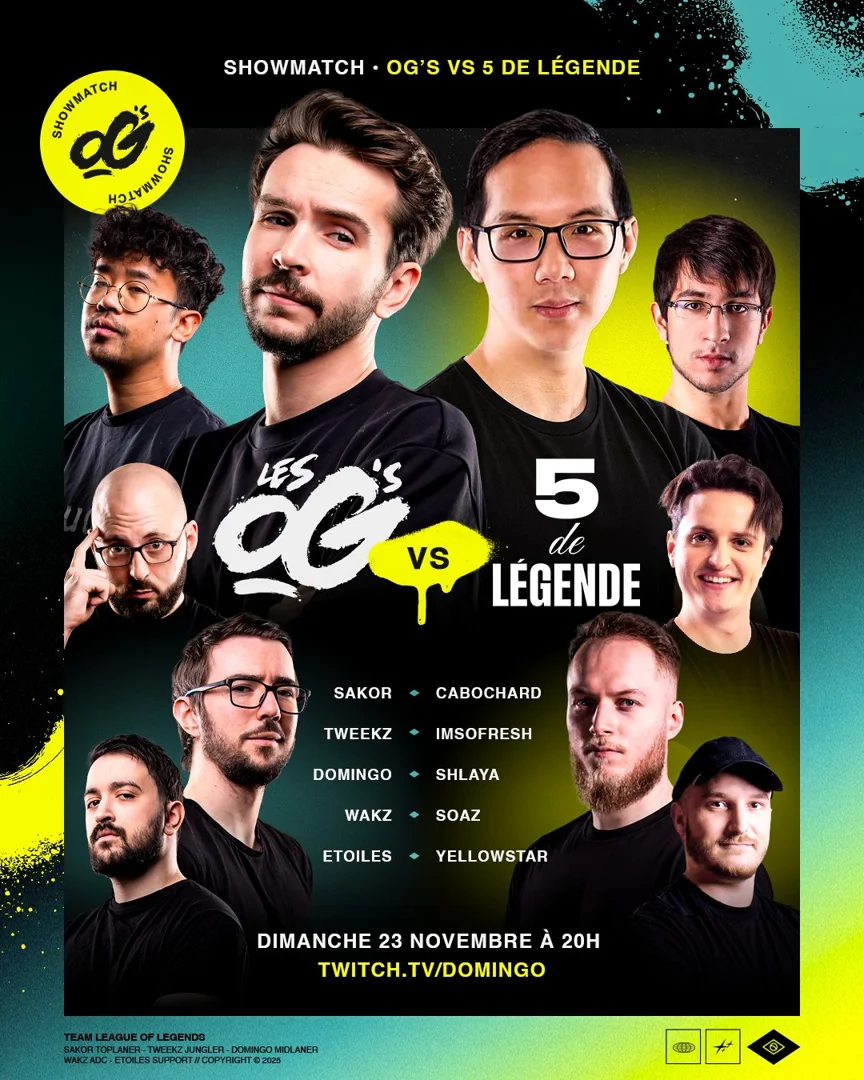 Deuxième soirée d’entraînement pour Les OG’s, retrouve Sakor, Tweekz, Domingo, Wakz et Étoiles pour un showmatch contre Cabochard, ImSoFresh, Shlaya, Soaz, YellowStarWhere to watch