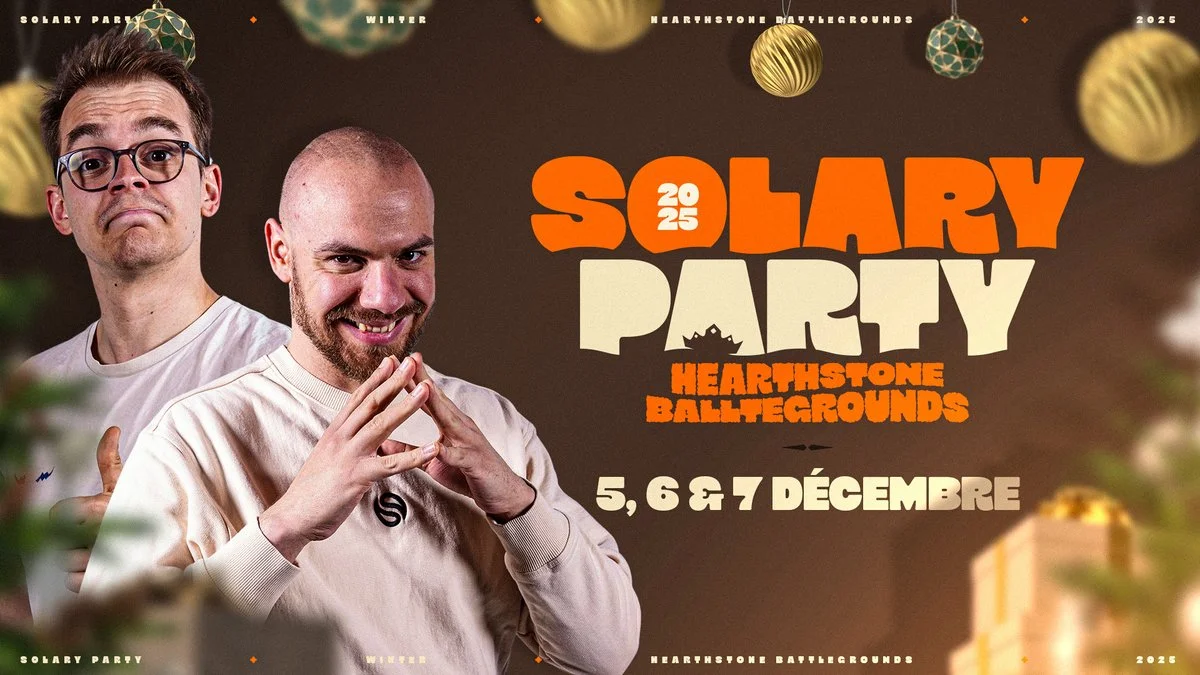 La première édition de la Solary Party Winter se déroule du 5 au 7 décembre 2025 à Hearthstone Battlegrounds. Un événement hivernal organisé par Solary pour clôturer l'année en style, réunissant la communauté autour de compétitions et animations festives.