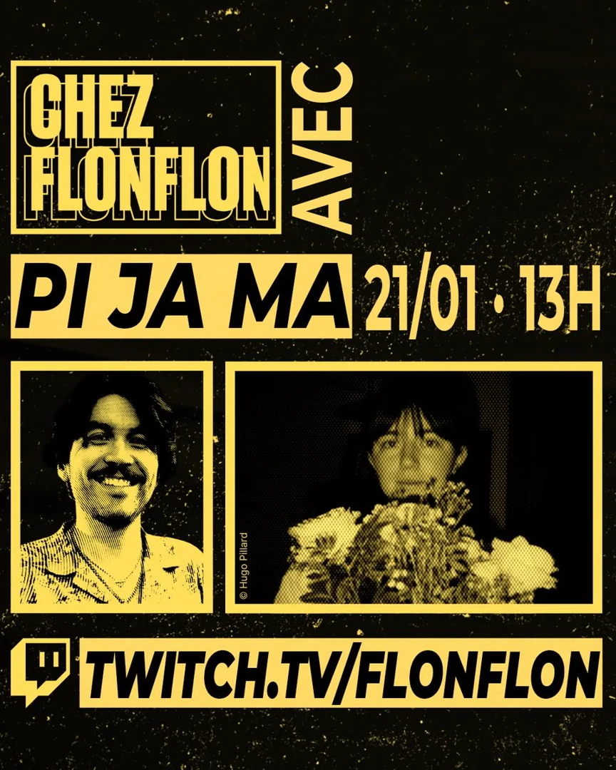 Flonflon invitera en direct PI JA MA sur sa chaine Twitch. PI JA MA est une chanteuse originaire d'Avignon.Où regarder